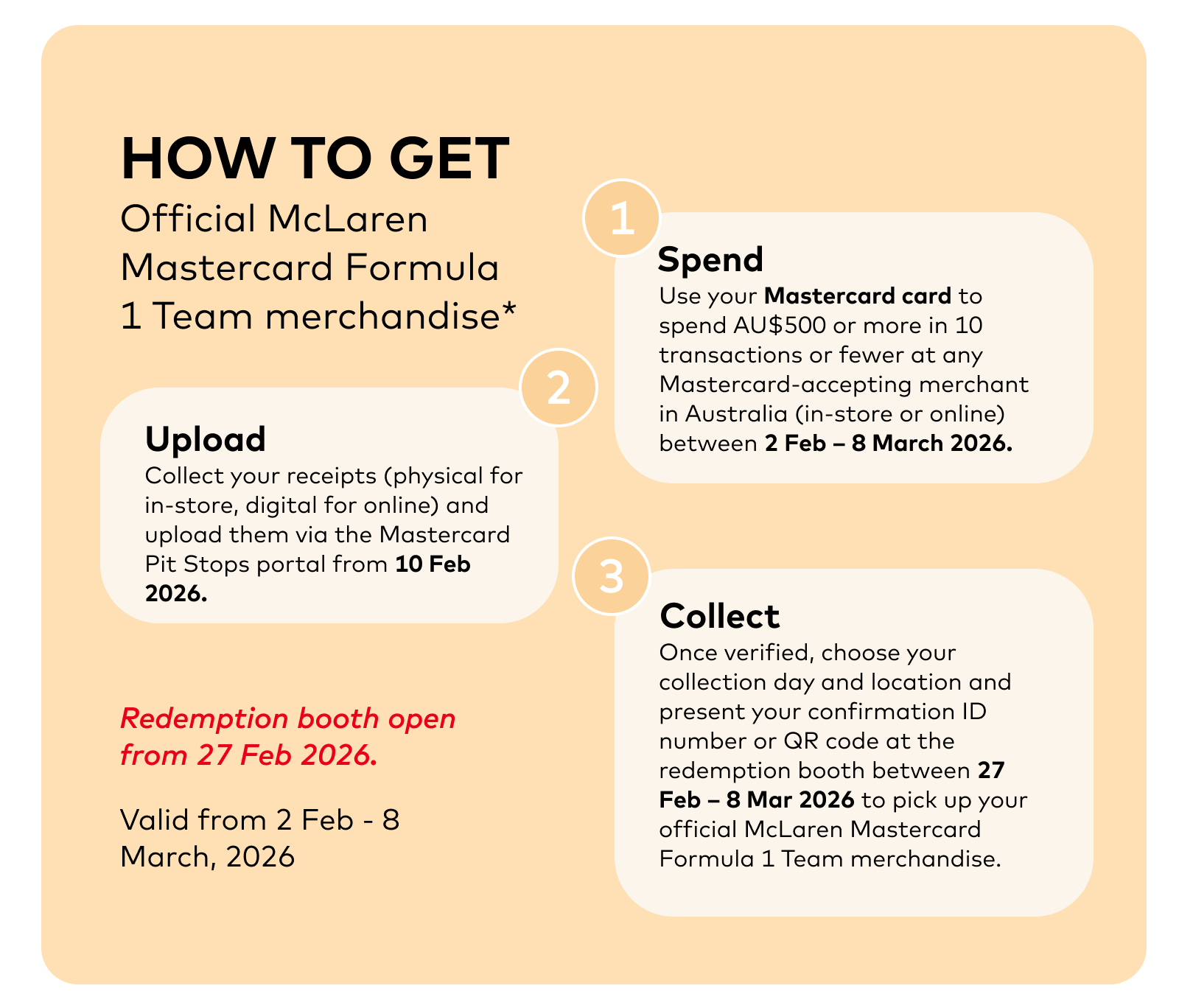 Offers are subject to individual merchant terms and conditions, availability, and may vary. Mastercard is not responsible for merchant fulfillment. Eligible Cardholders must pay with a valid Mastercard. See full T&Cs
